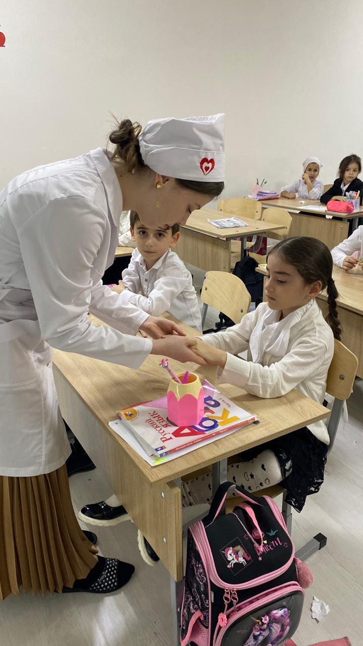 Медсестра в гимназии контролирует качество питания, проводит санитарно-просветительную работу среди учеников и персонала, и обеспечивает связь между семьей и  школой.